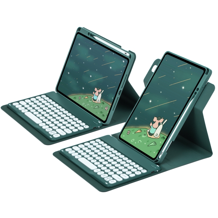 Funda de Cuero con Teclado Bluetooth para iPad 10th Gen 10.9 2022 Botón Redondo Giratoria 360 (Verde Oscuro)