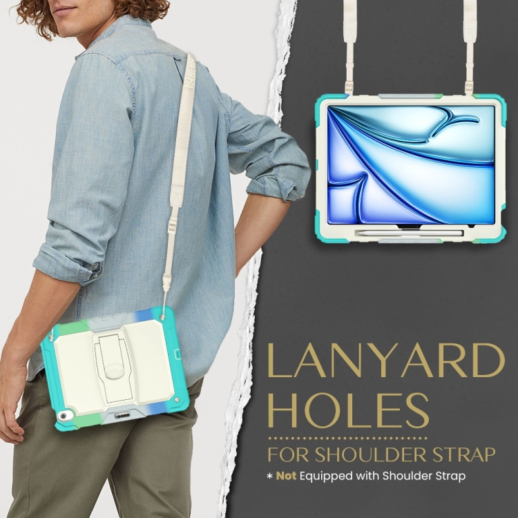 Funda de Silicona Hídrica para iPad Air 13 (2025/2024) con Correa y Soporte (Azul Claro Camuflaje)