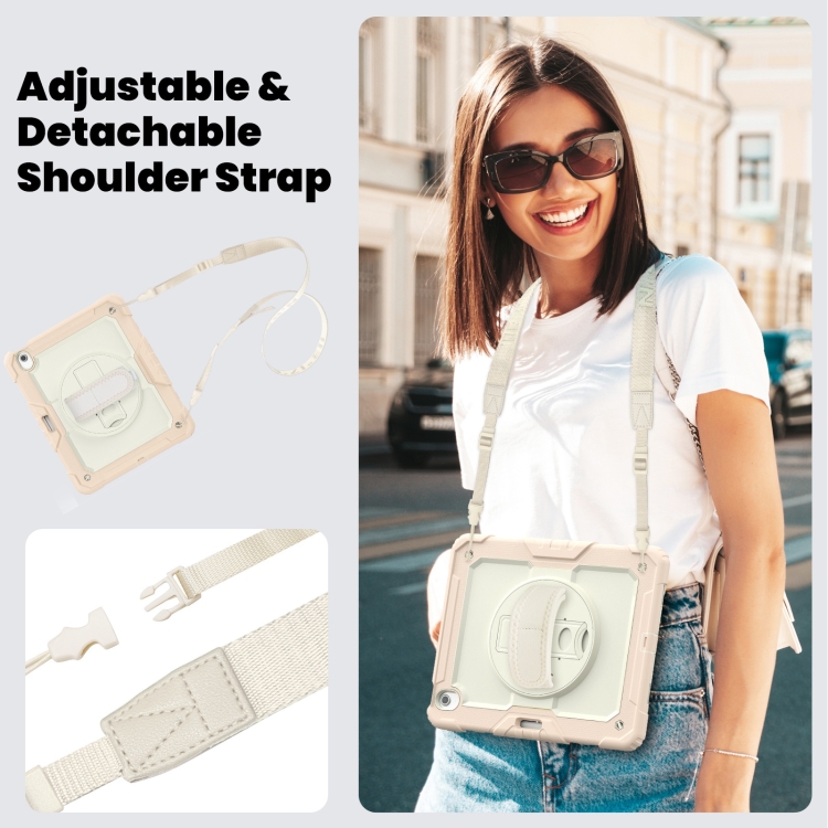 Funda híbrida de silicona para iPad Air 13 (2025/2024) con correa para el hombro (Beige y Oro Rosa)