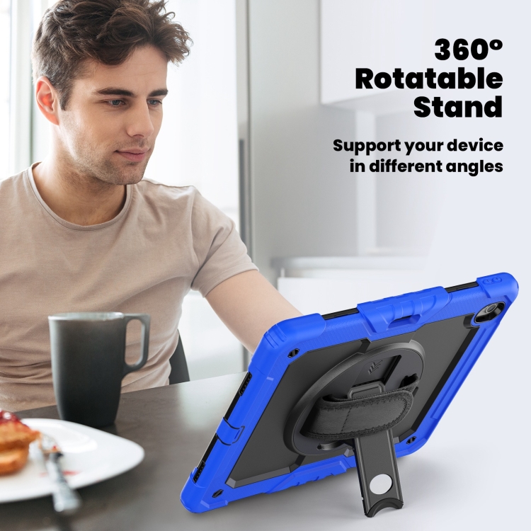 Funda híbrida Silicona para iPad Air 13 (2025/2024) con Correa para El Hombro (Negro y Azul Oscuro)