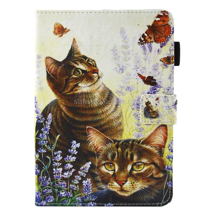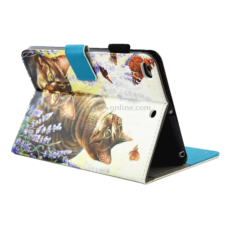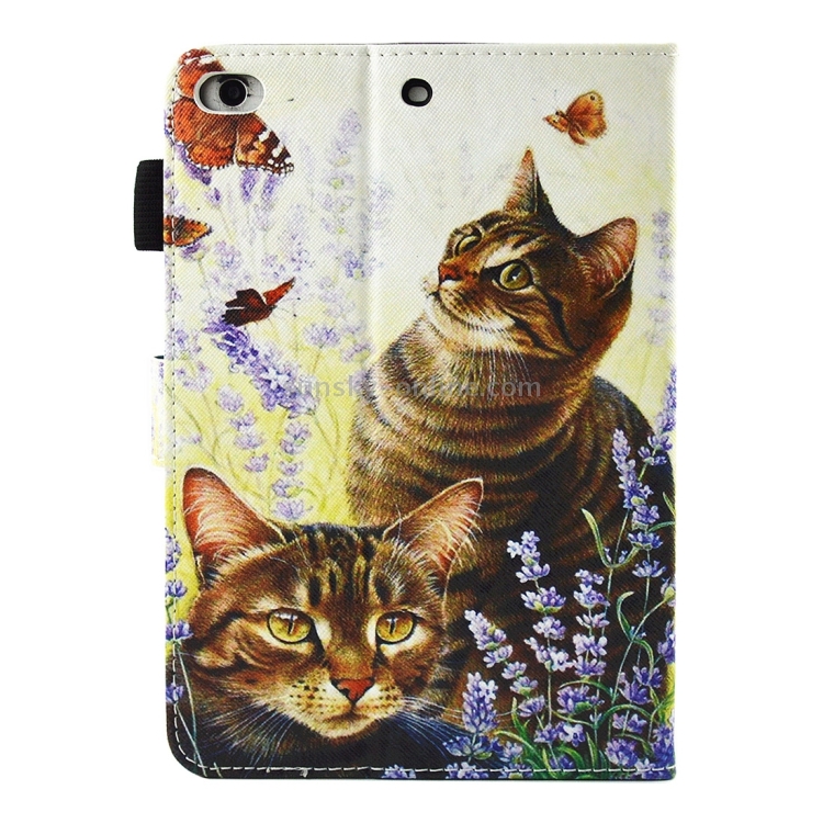 Funda para iPad Mini 4/3/2/1 Cuero con Tapa Horizontal Soporte Billetera Ranuras Tarjetas Suspensión Ranura Bolígrafo (Patrón Gatos y Mariposas)