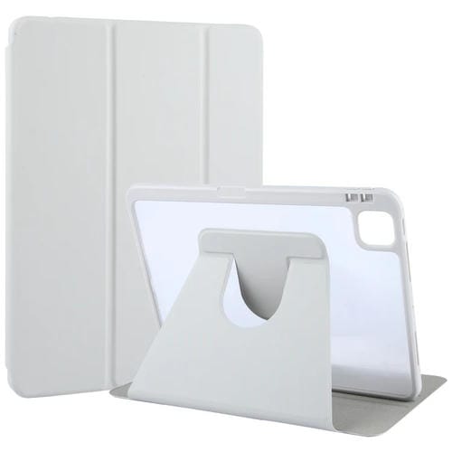 Funda para iPad Pro 11 Gebei Piel Sintética Tres Pliegues Giratoria Acrílico TPU Ranura Bolígrafo (2024) (Gris)