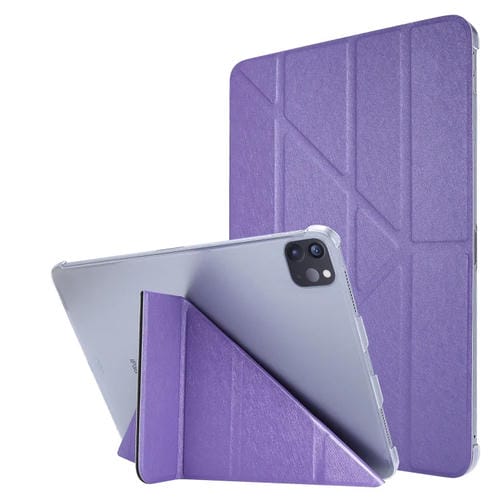 Funda de Cuero para Tableta iPad Pro 12.9 2022 / 2021 Textura de Seda Deformación Horizontal Flip con Soporte (Púrpura)