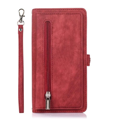Funda para teléfono iPhone 11 Cremallera Ranura para Tarjeta Hebilla Monedero Cuero (Rojo)