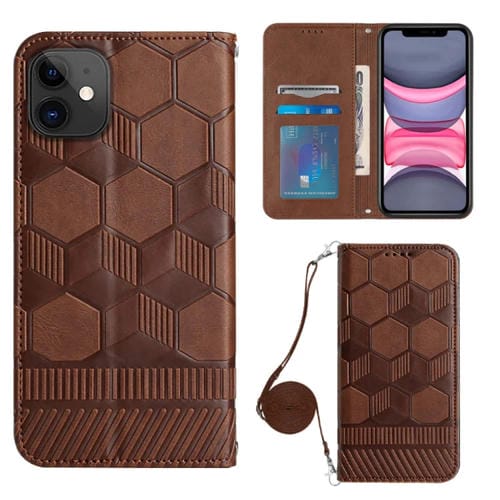 Funda para iPhone 11 Crossbody Football Texture Magnética PU (Marrón)