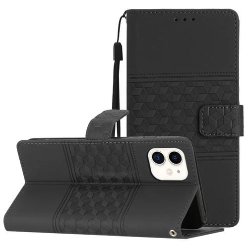 Funda de Cuero para iPhone 11 Diamond Embossed Skin Feel con Cordón (Negro)