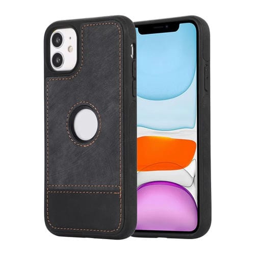 Funda para iPhone 11 Empalme Costura Caja de Teléfono de PU con Recorte Hueco (Negro)