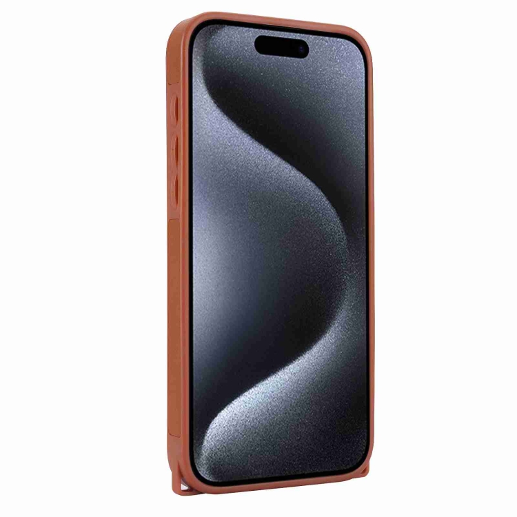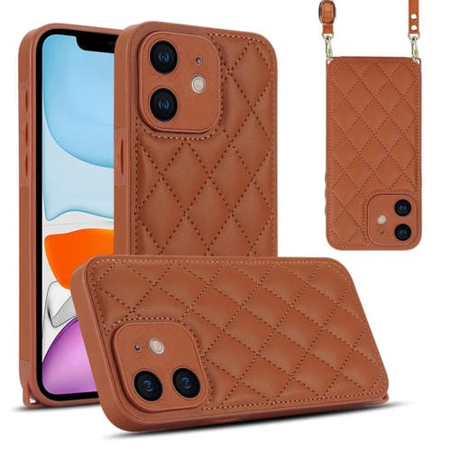 Estuche para Teléfono iPhone 11 con Textura Rómbica y Cordón Doble (Marrón)