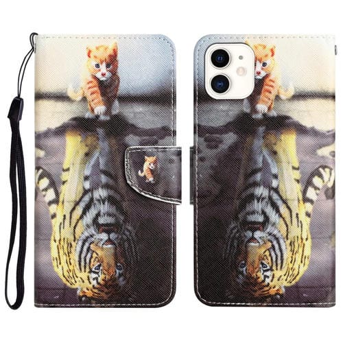 Estuche para teléfono iPhone 11 Cuero Dibujo a Color (Tigre)