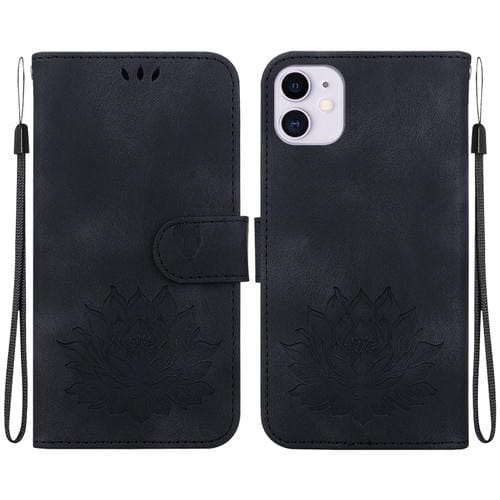 Funda para iPhone 11 Cuero Relieve de Loto (Negro)