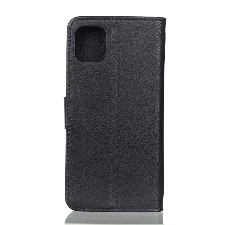 Funda de Cuero para iPhone 11 con Tapa Horizontal, Textura Piel de Vaca, Soporte y Ranuras para Tarjetas y Billetera (Negro)