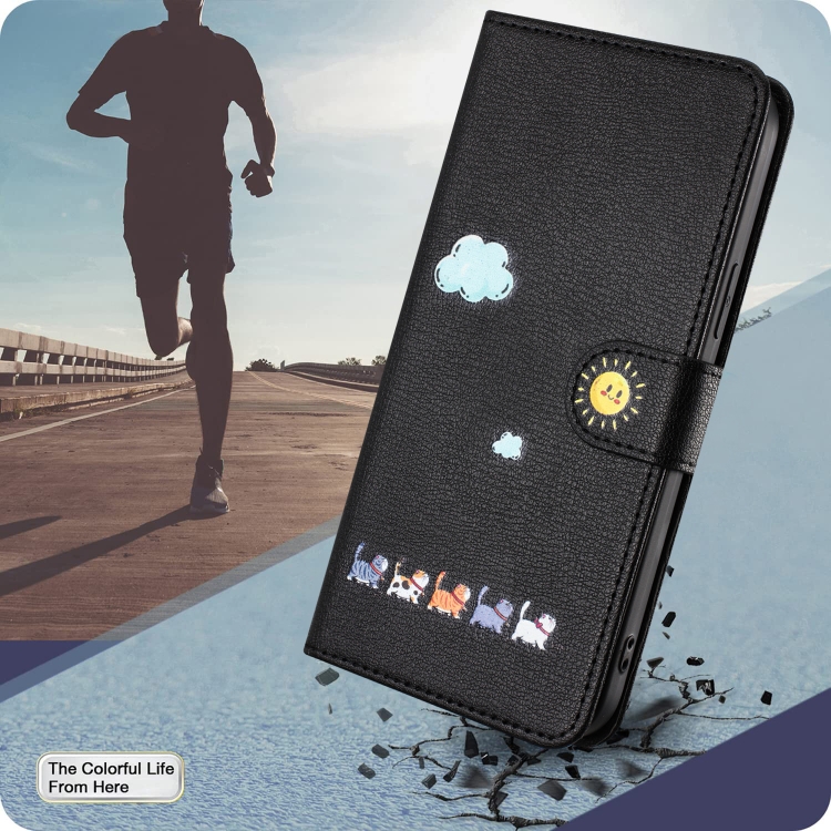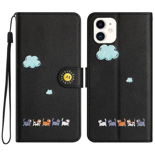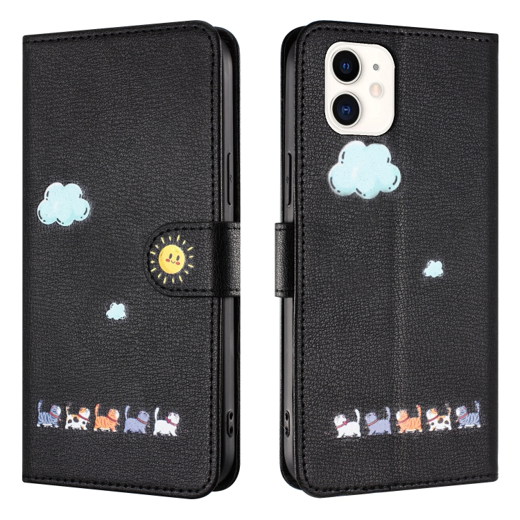 Funda para teléfono iPhone 11 de cuero con gatos de dibujos animados (Negro)