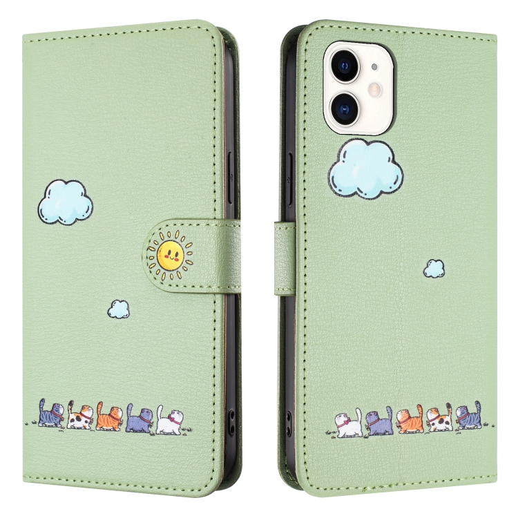 Funda para Teléfono iPhone 11 Cuero Gatos Dibujos Animados (Verde)