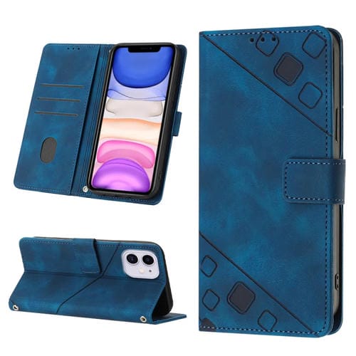 Funda de teléfono iPhone 11 Cuero en relieve con tacto de piel (Azul)