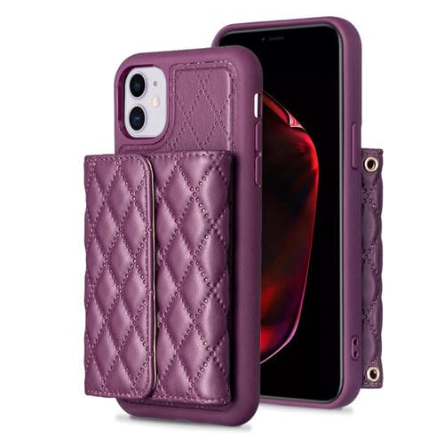 Funda de Teléfono Rombal para iPhone 11 Cuero con Billetera Horizontal (Púrpura Oscuro)