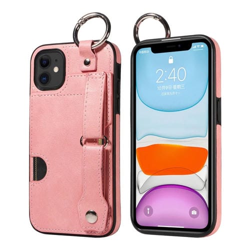 Funda para Teléfono iPhone 11 con Anillo y Ranura para Tarjeta con Textura de Pantorrilla (Rosa)