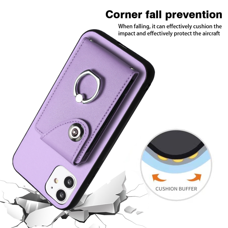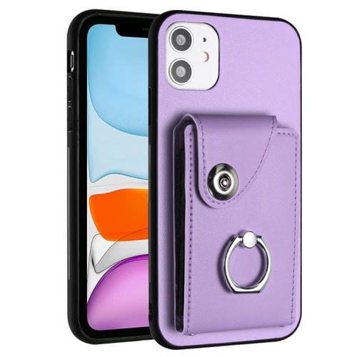 Funda para Teléfono iPhone 11 con Soporte para Anillo y Bolsa para Tarjeta de Órgano (Púrpura)