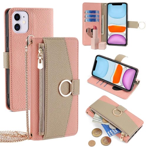 Funda para Teléfono iPhone 11 Cuero Textura Litchi Cruzada (Rosa)