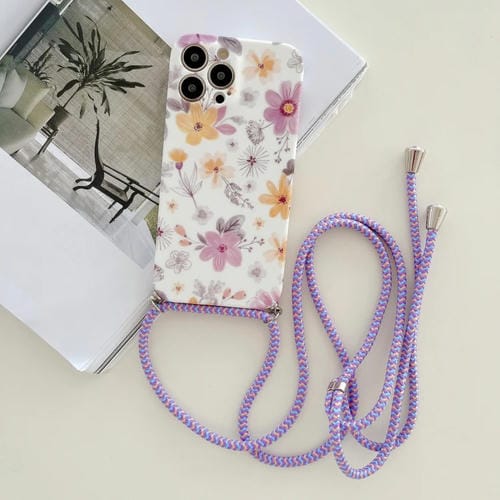 Funda para iPhone 11 Lanyard Small Floral TPU Phone Case (Púrpura)