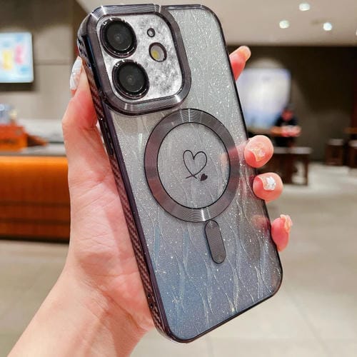 Estuche para Teléfono iPhone 11 Loves Leaves Magsafe TPU Brillo Degradado Fibra de Carbono (Negro)