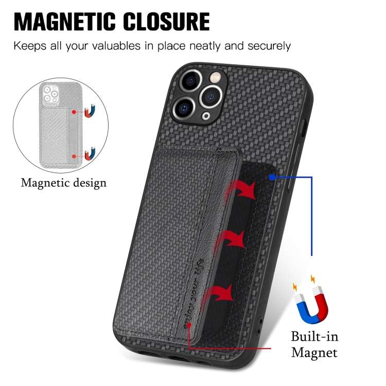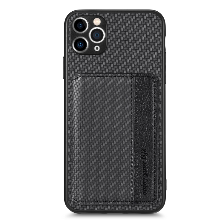 Caja de Teléfono para iPhone 11 Pro con Bolsa de Tarjeta Magnética Fibra de Carbono (Negro)