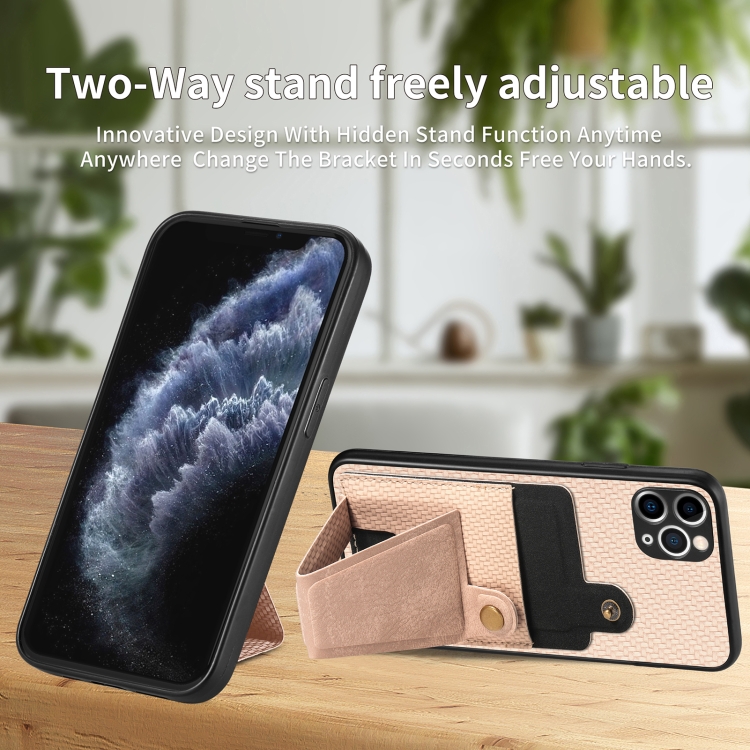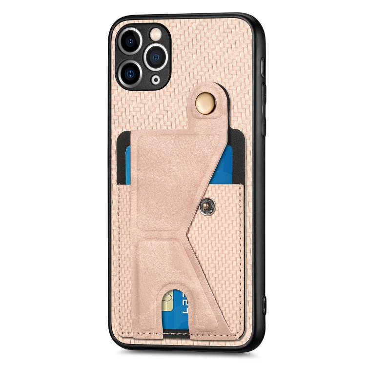 Funda para iPhone 11 Pro Carbon Fiber Wallet Flip Card con Soporte en Forma de K (Caqui)