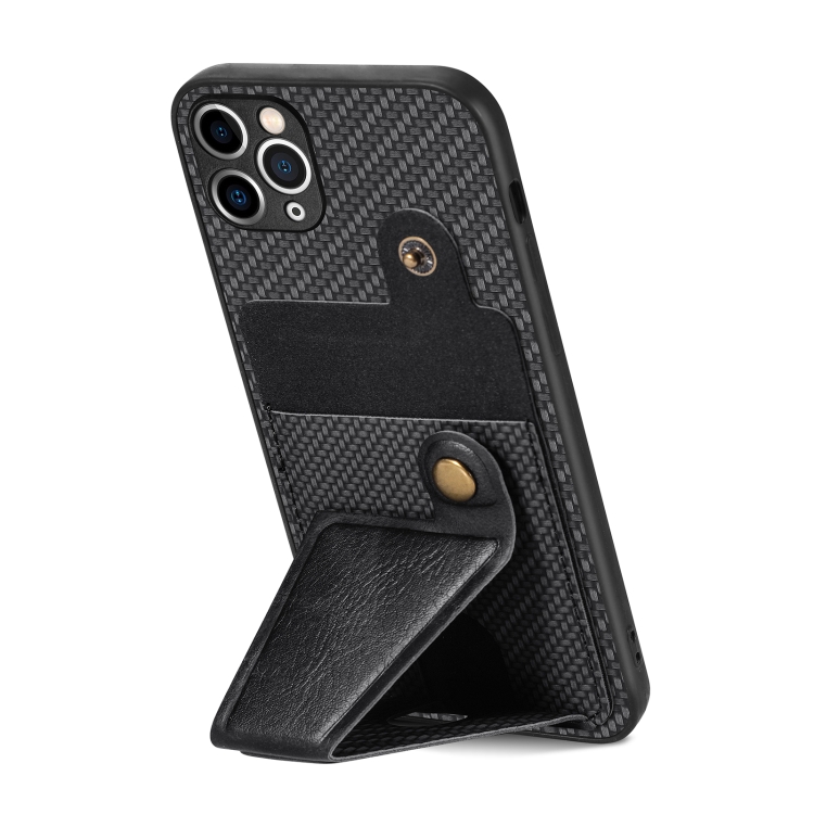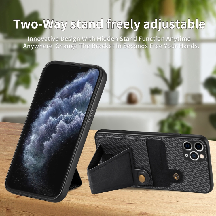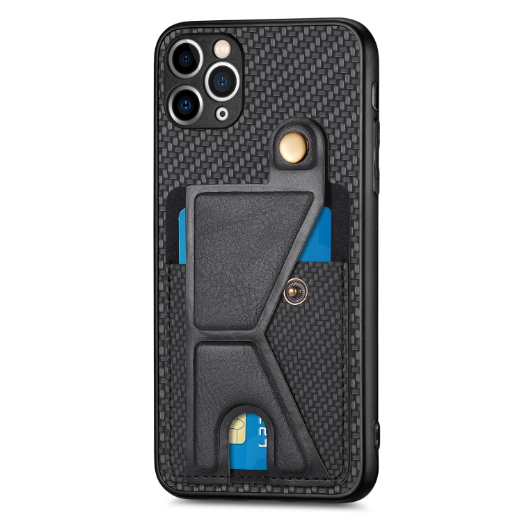Funda para Teléfono iPhone 11 Pro Carbon Fiber Wallet Flip Card con Soporte en Forma de K (Negro)