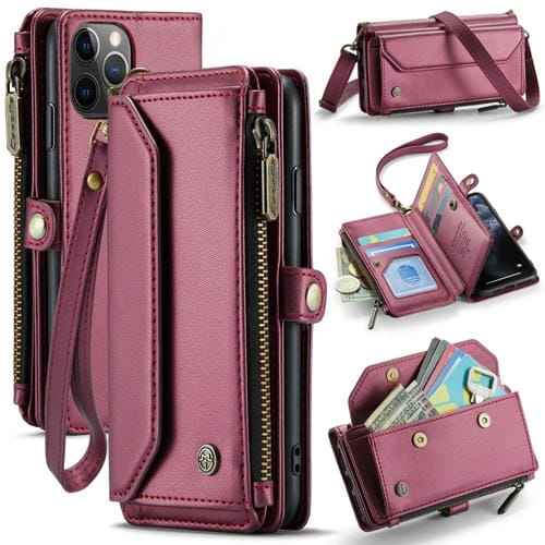 Funda para iPhone 11 Pro Caseme C36 Cartera con Ranuras para Tarjetas y Cremallera Antirrobo Rfid (Rojo Vino)