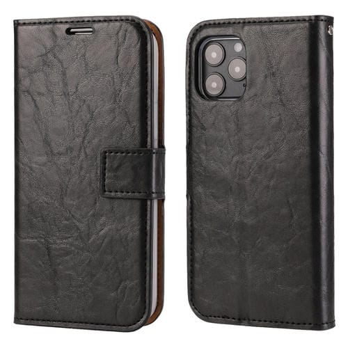 Funda para iPhone 11 Pro Crazy Horse Cubierta Trasera Magnética de Cuero con Tapa Horizontal Soporte Ranuras Tarjetas Marco Fotos Billetera (Negro)