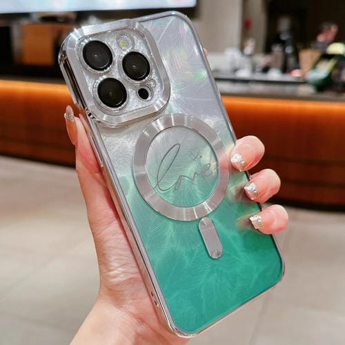 Funda para teléfono Dual-Love Feather Gradient Glitter Magsafe TPU para iPhone 11 Pro (Verde)