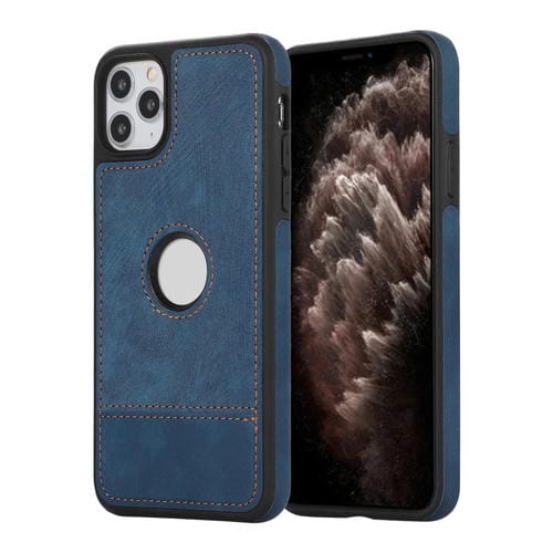 For iPhone 11 Pro Splicing Stitching PU Phone Case with Hollow Cutout (Blue)