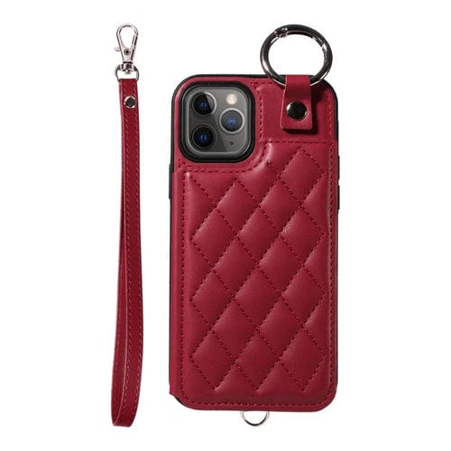 Estuche para Teléfono iPhone 11 Pro Bolsa para Tarjetas Textura Rómbica Cordón Corto (Rojo Vino)