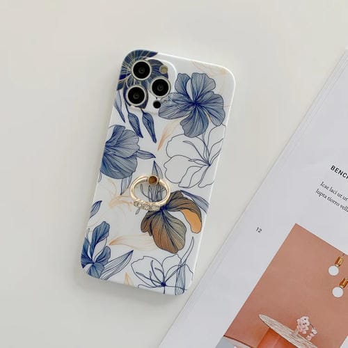 Funda TPU para iPhone 11 Pro Frusted Flowers Pattel con Titular de Anillo de Diamante de Metal (Azul)