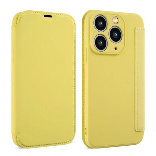 Funda para Teléfono iPhone 11 Pro Imitación Cuero Sensación Piel Líquida Ranuras para Tarjetas (Amarillo)