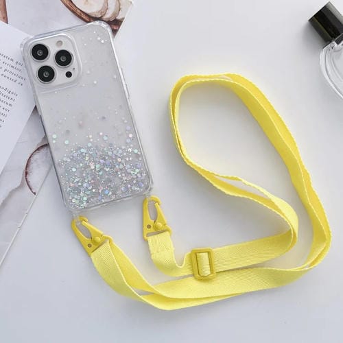 Funda para iPhone 11 Pro Lanyard Glitter Epoxy Clear Phone Case (Amarillo)