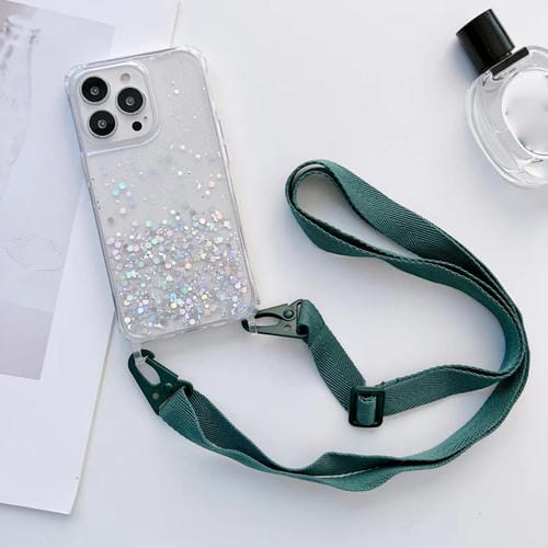 Funda para iPhone 11 Pro Lanyard Glitter Epoxy Clear Phone Case (Verde Oscuro)