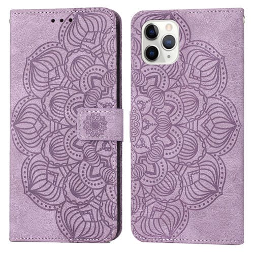 For iPhone 11 Pro Mandala Embossed Flip Leather Phone Case (Purple)