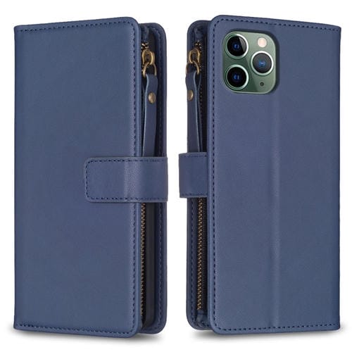 Funda Cartera para iPhone 11 Pro Max 9 Ranuras para Tarjetas Cremallera Cuero con Tapa (Azul)