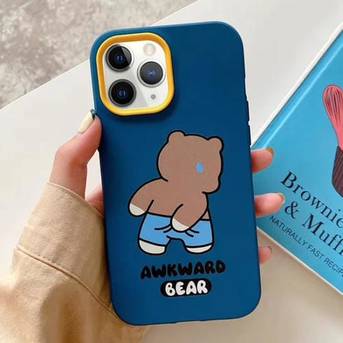 Estuche híbrido para iPhone 11 Pro Max Awkward Bear PC y TPU (Azul Real)