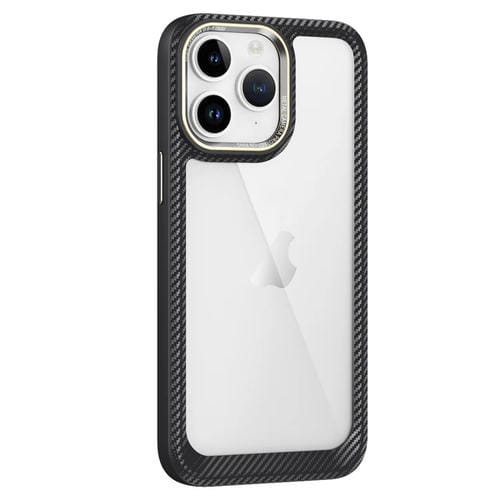 Funda para teléfono iPhone 11 Pro Max Carbon Fiber Panel Trasero Transparente (Negro + Transparente)