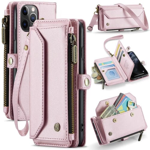 Estuche para teléfono Caseme C36 para iPhone 11 Pro Max cartera con ranuras para tarjetas cremallera cuero antirrobo Rfid (Rosa)