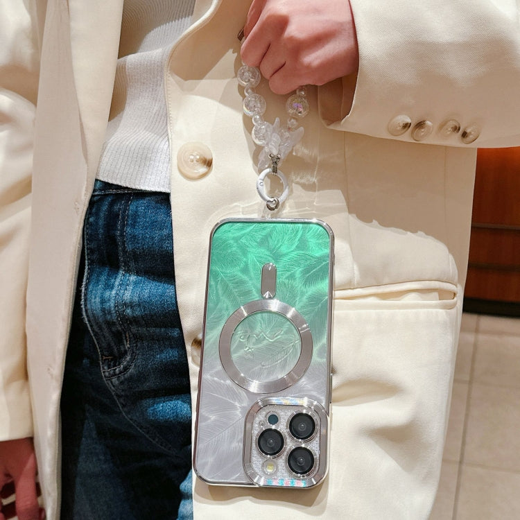 Funda para Teléfono iPhone 11 Pro Max Dual-Love Feather Gradient Glitter Pulseras Magsafe TPU (Verde)