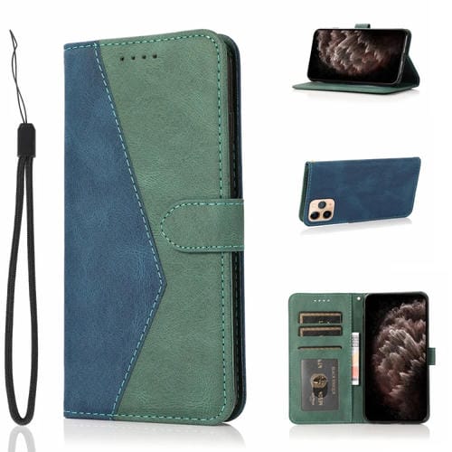 Estuche para Teléfono iPhone 11 Pro Max Cuero Costuras Dos Colores (Azul Verde)