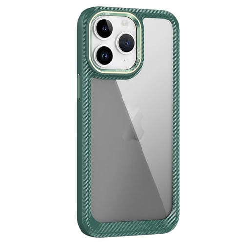 Caja del Teléfono para iPhone 11 Pro Max Fibra de Carbono Panel Trasero Transparente (Verde)