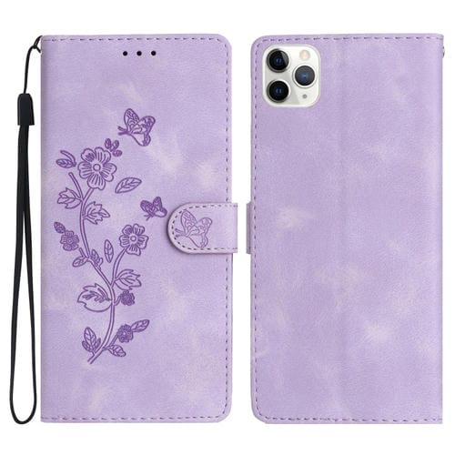 Funda de Teléfono iPhone 11 Pro Max Cuero Estampado Flores En Relieve (Púrpura)