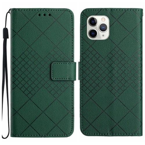 Funda para Teléfono iPhone 11 Pro Max Cuero Textura Rejilla Rómbica (Verde)