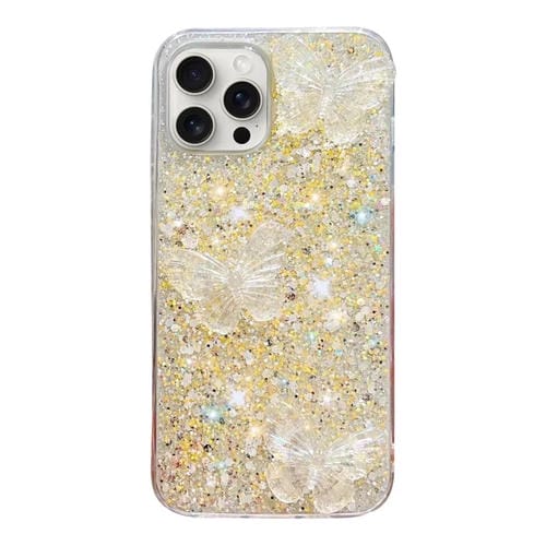 Funda para teléfono TPU Epoxi iPhone 11 Pro Max con mariposas de cristal y Lentejuelas estrelladas (Amarillo)