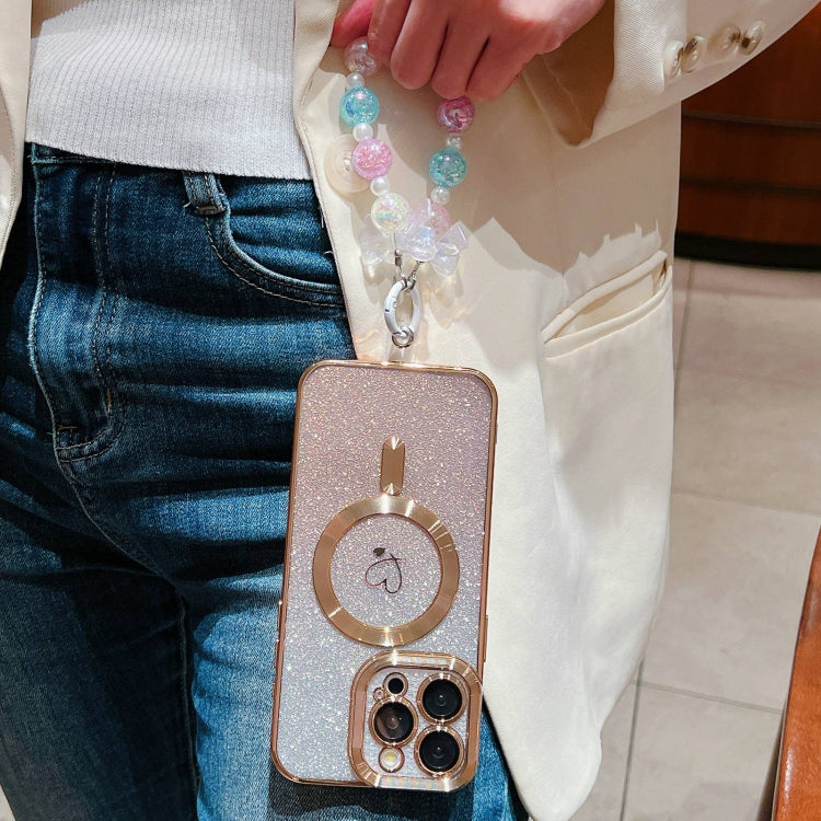 Funda para Teléfono iPhone 11 Pro Max Loves Gradient Glitter Pulseras Magsafe TPU Fibra de Carbono (Oro)