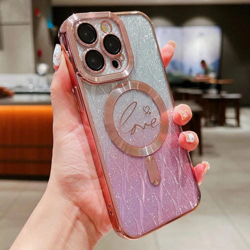 Estuche para Teléfono iPhone 11 Pro Max Magsafe Dual-Love Leaves TPU con Brillo Degradado (Rosa)
