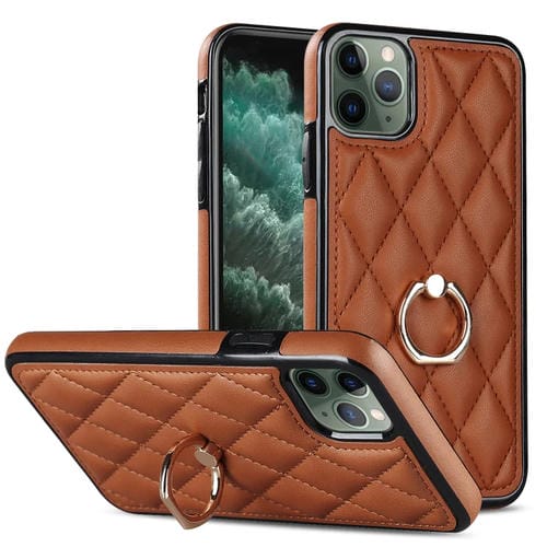 Funda para iPhone 11 Pro Max Rhombic PU Cuero con Soporte para Anillo (Marrón)
